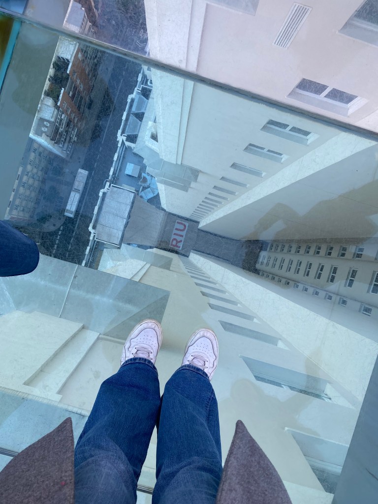 Dit is mijn beste tip voor een mooi uitzicht over Madrid. RUI is een hotelketen en hun vestiging in Madrid is prachtig. Het heeft 27 verdiepingen en hier bovenop vind je een rooftop. Hier kun je een drankje doen en rondlopen om het uitzicht te bewonderen. Er is ook een glazen loopbrug, wat het een extra leuke activiteit maakt wat mij betreft. Je hebt op deze rooftop een 360 graden uitzicht over de stad. Om hier naar boven te gaan betaal je €5, en vanaf 17:00 uur betaal je €10. Het is wel een aanrader om hier eind van de middag heen te gaan (als je slim bent iets voor vijf uur) en de zonsondergang mee te pakken.